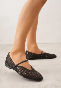 Czarne Ażurowe Balerinki z Imitacji Plecionki z Paskiem Naeraea