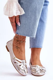 Damskie Skórzane Baleriny Maciejka 01358-22 Beżowo-Złote-38