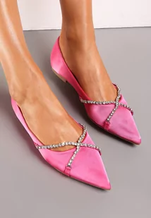 Fuksjowe Balerinki ze Szpiczastym Noskiem i Ozdobnym Paskiem z Cyrkoniami Tinara
