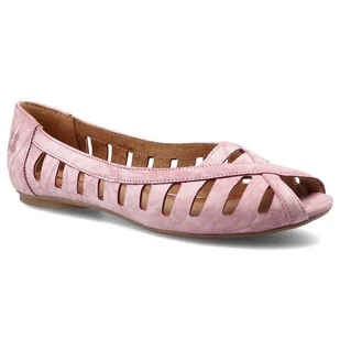 Różowe baleriny MACIEJKA 04506-08/00-5 Czerwony Na Biało to cudowne obuwie w cukierkowej kolorystyce. Uroczą cholewkę uszyto z nubuku. Ażurowa kompozycja opo...