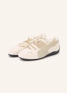 Nosek w kształcie migdała. Płaska podeszwa. Wyjmowana wkładka. Haft z marką. Antypoślizgowa podeszwa zewnętrzna. Skóra welurowa. Dwukolorowe wykończenie. Wąskie paski