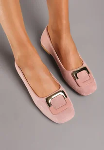 Różowe Płaskie Klasyczne Balerinki z Ozdobną Klamrą Nassnema