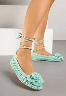 Zielone Balerinki z Ażurową Cholewką Ozdobione Kwiatem 3D Cleiria