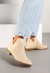 Beżowe Botki Vices na Płaskiej Podeszwie Ozdobione Wycięciem Felirwen