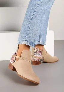 Beżowe Botki Vices na Słupku Ozdobione Kwiatami Selianor
