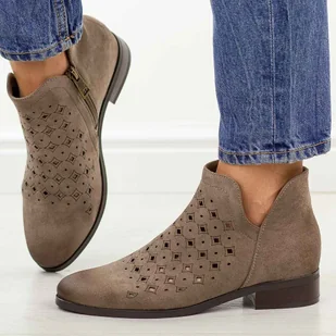 to idealny wybór na chłodniejsze dni wiosny, jesieni oraz mniej upalne lato. Ich cholewka wykonana z materiału zamszopodobnego zapewnia nie tylko elegancki wygląd, ale także trwałość i komfort użytkowania. Zapinane na suwak ułatwiają szybkie zakładanie i zdejmowanie butów, a okrągły nosek dodaje im subtelnego uroku. Ażurowana konstrukcja cholewki sprawia, że buty są przewiewne, co zapewnia komfort noszenia nawet podczas dłuższych spacerów. Wkładka ze skóry naturalnej gwarantuje miękkość i przyjemność noszenia przez cały dzień.