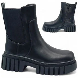 Botki Damskie SKÓRZANE Eleganckie Jesienne na Platformie Czarne Barski 39