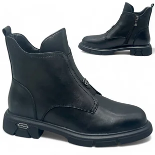 Botki Damskie SKÓRZANE Eleganckie Jesienne na Platformie Czarne Barski 39