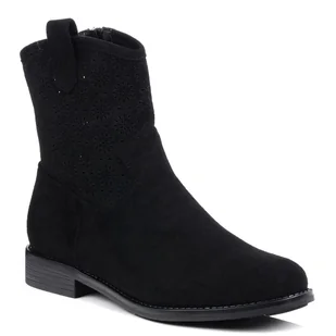 Botki damskie czarne S.Barski HY52-530 płaskie ażurowe zamszowe na zamek-39