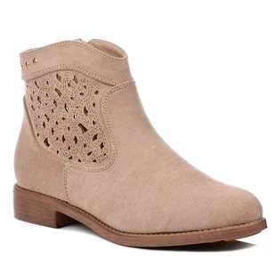 Botki damskie płaskie ażurowe zamszowe na zamek beżowe S.Barski HY51-113-36