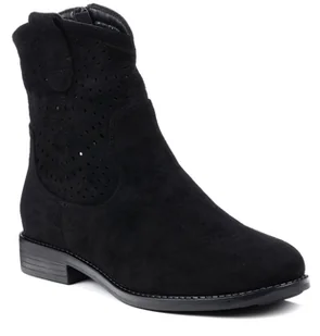 Botki damskie płaskie jesienne ażurowe na suwak czarne S.Barski 42-135-36
