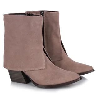zamek Materiał: skóra naturalna zamszowa Obcas: 6 cm Podeszwa: 1 cm Tęgość: G Wnętrze: delikatne ocieplenie (materiał tekstylny) Wkładka:
