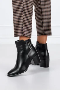 Botki Sergio Leone damskie na szerokim słupku ozdoba czarne BT661-40