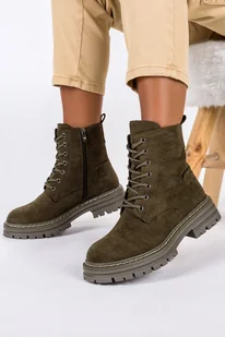 Botki Sergio Leone damskie workery na platformie sznurowane zielone TR915-36