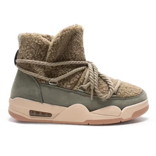 Botki Zimowe Wygodne Wsuwane Ocieplane Sznurowane Stylowe Śniegowce Z Futerkiem Mily Zielone 36