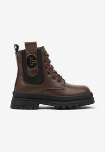 Brązowe Botki Clibee w Stylu Workerów Zdobione Metalową Aplikacją Lealinde