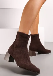 Brązowe Botki na Słupku z Kwadratowym Noskiem Jozelinetta