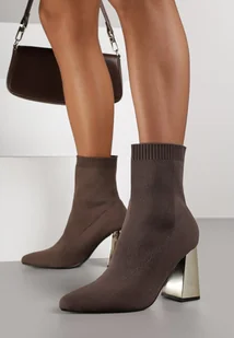 Brązowe Skarpetkowe Botki VICES na Słupku w Eleganckim Stylu Rarana