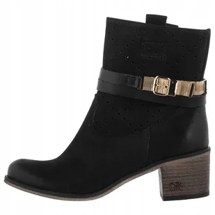 Carinii B5099-360 ażurowe botki czarne damskie klocek r.36