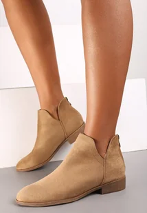 Ciemnobeżowe Botki na Płaskiej Podeszwie z Ozdobnym Wycięciem Zapinane na Suwak Liletta