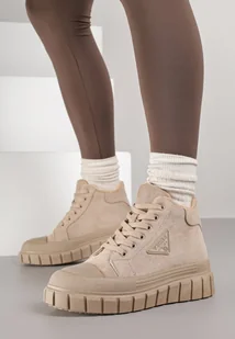 Ciemnobeżowe Botki Vices Typu Trapery na Platformie z Tłoczeniem i Aplikacją Gioselda