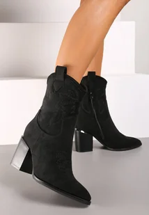 Czarne Botki Kowbojki na Obcasie Ozdobione Haftem Mevael