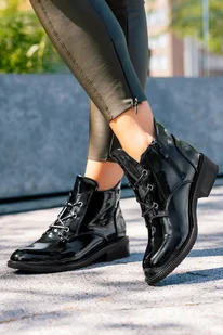 Czarne botki damskie lakierowane na niskim klocku sznurowane Casu D24WX4-B-36