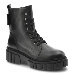 Czarne Trzewiki Karino Skórzane Ocieplane Buty Damskie