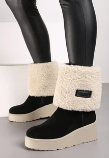 Czarne Botki na Koturnie z Futerkiem Typu Baranek Asnora
