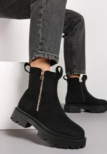 Czarne Botki z Ozdobną Taśmą z Nadrukiem Dudrey