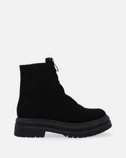 Botki damskie wykonane z przyjemnej w dotyku skóry naturalnej typu zamsz. Model z suwakiem z przodu cholewki, który ułatwia codzienne korzystanie. Modnego charakteru nadaje masywna podeszwa z ozdobnym otokiem. tłoczony otok wzmocniony nosek i zapiętek wyściółka ocieplona miękkim materiałem skórzana wkładka estetyczne przeszycia