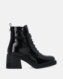 Eleganckie damskie trzewiki skórzane lakierowane to propozycja dla kobiet ceniących styl i wygodę. Wykonane ze skóry lakierowanej, prezentują się szykownie i dodają charakteru każdej stylizacji. Model sznurowany z praktycznym suwakiem zapewnia wygodę zakładania i doskonałe dopasowanie do stopy. Stabilny obcas podkreśla kobiecy styl, a jednocześnie gwarantuje komfort noszenia. Ocieplane wnętrze sprawia, że buty idealnie nadają się na chłodniejsze dni.