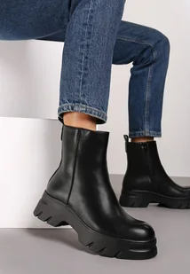 Czarne Ocieplone Botki na Tłoczonej Podeszwie Teralea