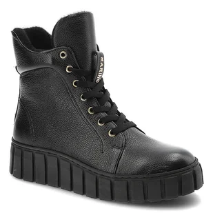 Czarne Trzewiki Karino Damskie Skórzane Ocieplane Obuwie