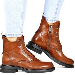 Botki na płaskiej podeszwie to doskonały wybór na chłodną jesień i zimę. Zapinanie jest na zamek oraz sznurowanie, dzięki któremu można dopasować je do stopy...
