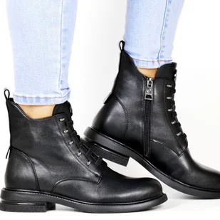 Botki na płaskiej podeszwie to doskonały wybór na chłodną jesień i zimę. Zapinanie jest na zamek oraz sznurowanie, dzięki któremu można dopasować je do stopy...