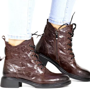 Damskie Trzewiki Botki Skórzane Vinceza 86412 Brązowe - VINCEZA