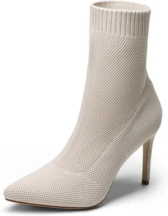 DREAM PAIRS botki damskie dzianinowe na szpilce nr 41 BEŻOWE antypoślizgowe