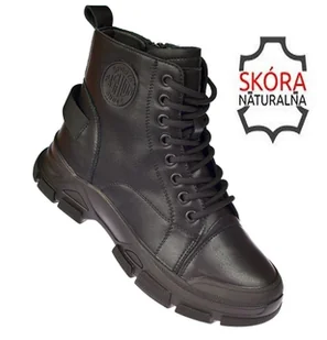 Botki damskie B-3-1502 – czarne trzewiki typu glany Klasyka i wygoda w jednym! Czarne botki damskie B-3-1502 to ponadczasowe trzewiki typu glany, które świetnie sprawdzą się w sezonie jesienno-zimowym. Wykonane zostały z wysokiej jakości skóry naturalnej, a wewnątrz wykończone są miękkim futerkiem, które chroni przed zimnem i zapewnia komfort noszenia. Buty posiadają sznurowanie na 8 dziurek, co umożliwia idealne dopasowanie do stopy, oraz suwak po wewnętrznej stronie, dzięki któremu można je szybko założyć i zdjąć. W komplecie znajdują się dwa zestawy sznurowadeł w różnych kolorach, pozwalające zmieniać charakter stylizacji w zależności od okazji. Trzewiki wyposażono w solidną, antypoślizgową podeszwę z wyraźnym bieżnikiem.