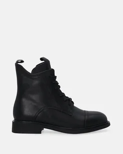 Damskie botki wykonane gładkiej skóry cielęcej w kolorze klasycznej czerni. Subtelnie wycięta cholewka podkreślona przeszyciami uzupełniona w sznurowanie oraz praktyczny suwak. Trzewiki idealnie sprawdzą się w sezonie jesienno-zimowym. futrówka ocieplana miękkim, krótkim futerkiem skórzana wkładka sznurowanie oraz suwak skórzana szlufka zaokrąglony nosek antypoślizgowa podeszwa niewielki obcas