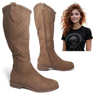 Kozaki Damskie Zamszowe wysokie Kowbojki ażurowe S.Barski HY52-531 Brązowe 40 Wybierając buty S.Barski, zyskujesz pewność lekkiego kroku i wsparcia, które pr...
