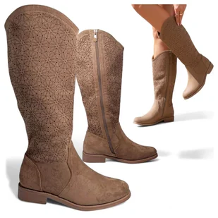 Kozaki Damskie Kowbojki Ażurowe Zamszowe Jesienne Eleganckie Brąz Barski 36 - S.Barski