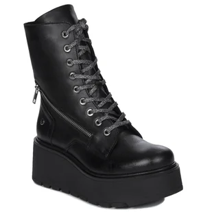 Maciejka Botki damskie skórzane na platformie czarny-38