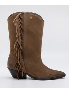 Skórzane botki w kolorze szarobrązowym - zapięcie: bez - noski: w szpic - detale: frędzle - forma obcasa: kubański - podeszwa: antypoślizgowa
