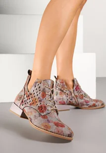 Szaro-Czerwone Botki ze Skórzaną Wkładką i Ażurowym Wzorem Nantiela