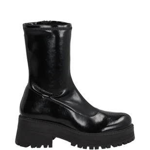 Botki damskie wykonane ze skóry lakierowanej w połączeniu z wysokiej jakości materiałem. Zachwycają minimalistycznym, ponadczasowym wyglądem. Prosta cholewka uzupełniona o suwak ułatwiający zakładanie butów. Całodzienny komfort gwarantuje wkładka z miękkiej i delikatnej skóry. Solidna, traperowa podeszwa zapewnia doskonałą przyczepność do podłoża i modny wygląd.