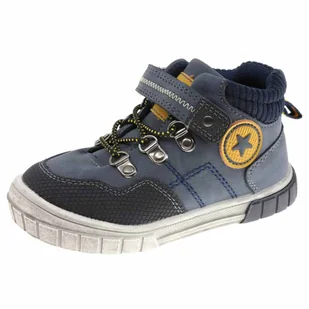 Płeć: Chłopcy, Kolor: Granatowy, Wysokość: Wysokie, Materiał: Skóra ekologiczna, Rodzaj zapięcia: Rzepy, Dodatkowe informacje: Sztywny zapiętek, Stan: Nowy