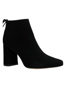Skórzane botki w kolorze czarnym - skóra welurowa - zapięcie: suwak - noski: w szpic - wyściółka: miękka - skórzana wkładka: tak - forma obcasa: blokowy - podeszwa: antypoślizgowa - praktyczna szlufka ułatwiająca zakładanie