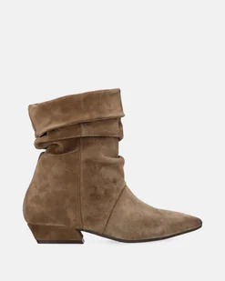 Brązowebotki damskie zamszowe o wyjątkowo kobiecym kroju. Miękka, marszczona cholewka z szerokim wsuwanym wykończeniem dodaje im lekkości i stylu. Noski w szpic z delikatnym przetarciem podkreślają modny, vintageowy charakter. Model bez zapięcia gwarantuje wygodę, a niski, stabilny obcas sprawia, że to idealne botki na co dzień i na wieczorne wyjścia. Świetnie komponują się zarówno z jeansami, jak i sukienką.