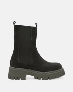 Zielone sztyblety damskie wykonane ze skóry naturalnej typu zamsz. Klasyczny krój z gładką cholewką wyposażoną w elastyczne wstawki ułatwiające wkładanie obuwia. Model będzie doskonałym dodatkiem do wielu stylizacji. elastyczne wstawki masywna podeszwa z bieżnikiem skórzane szlufki miękka, skórzana wkładka sygnowana logo marki zaokrąglone noski
